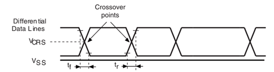 USB full speed timings: the definitions of data signal rise and fall time are presented in the following table and figure: