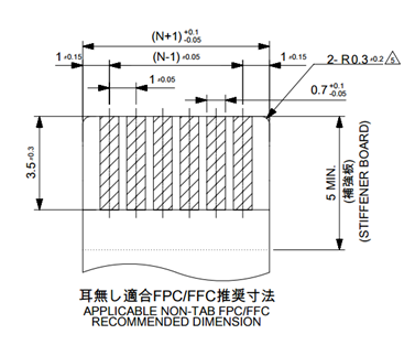The Touch Sensor Module has 8 contact pads and a PCB outline that matches that of a standard 0.3-0.33 mm thick FFC/FPC with 1 mm pitch and top mounted connectors: