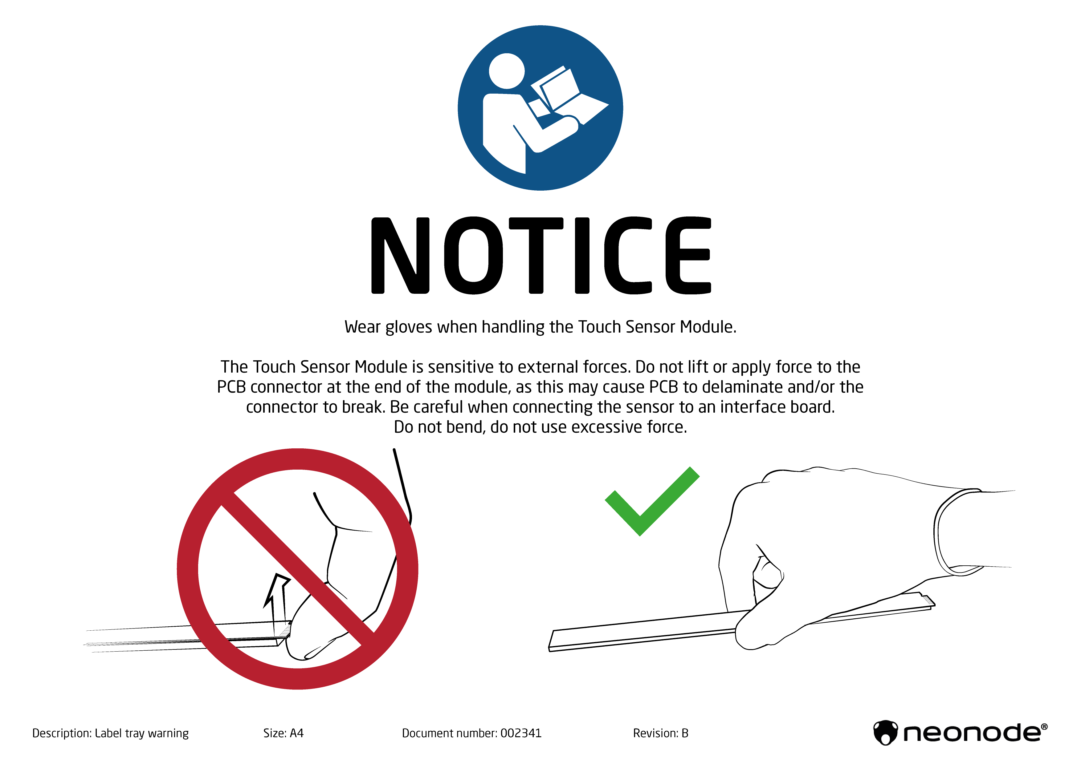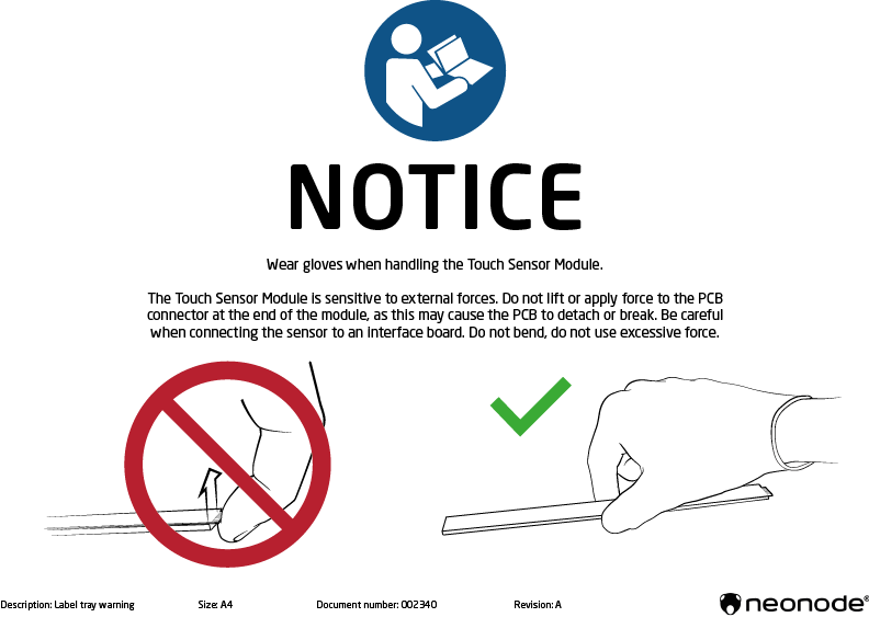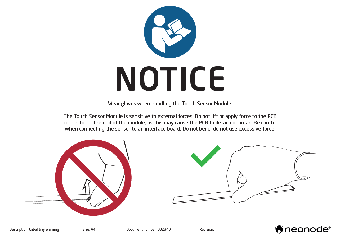 Since the sensor is an optical device wear gloves when handling the Touch Sensor Module to prevent blurring the light guide plate!