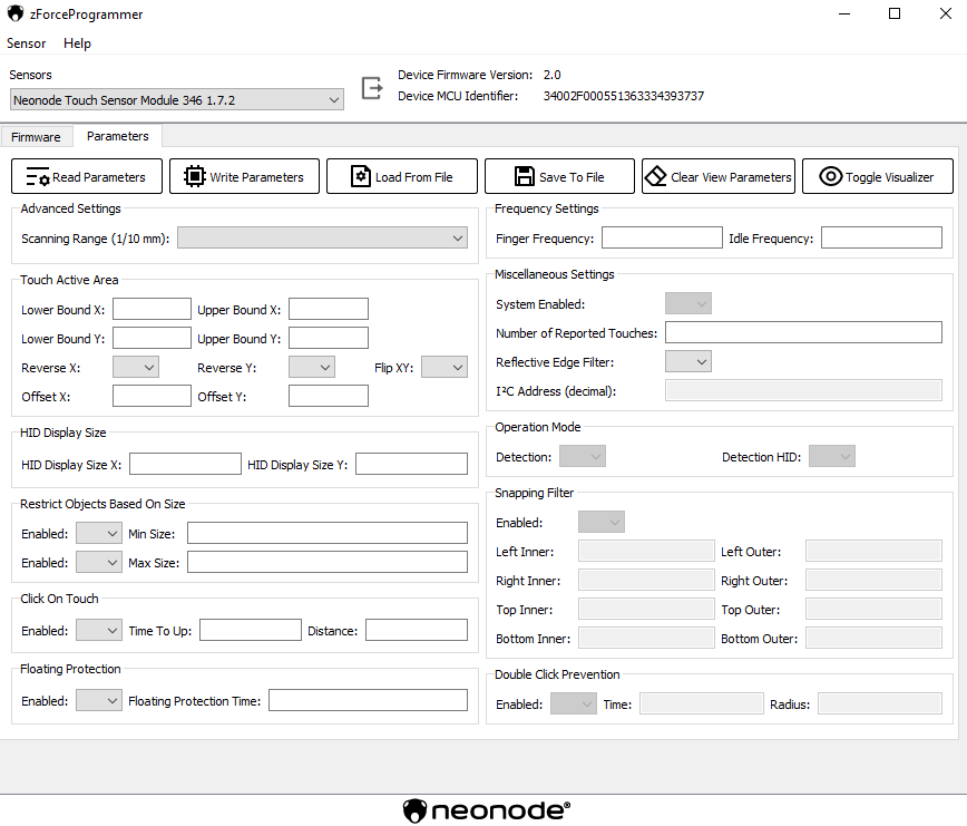 - The changed settings can be stored on the sensor persistently only using zForceProgrammer and only starting from FW version 2.0. Make sure you download (Downloads) the correct FW version.