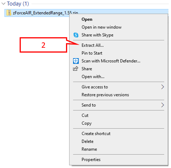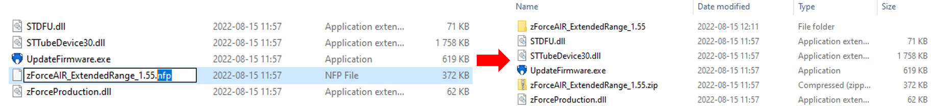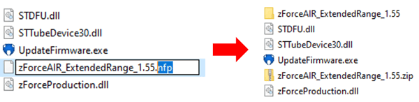 - If you don't have 7-zip, you should change the extension part from nfp to zip in order to create a zip-folder (zForceAIR_ExtendedRange_1.55.zip). Press "Yes" when asked if you want to change the file name extension. Extract the folder.