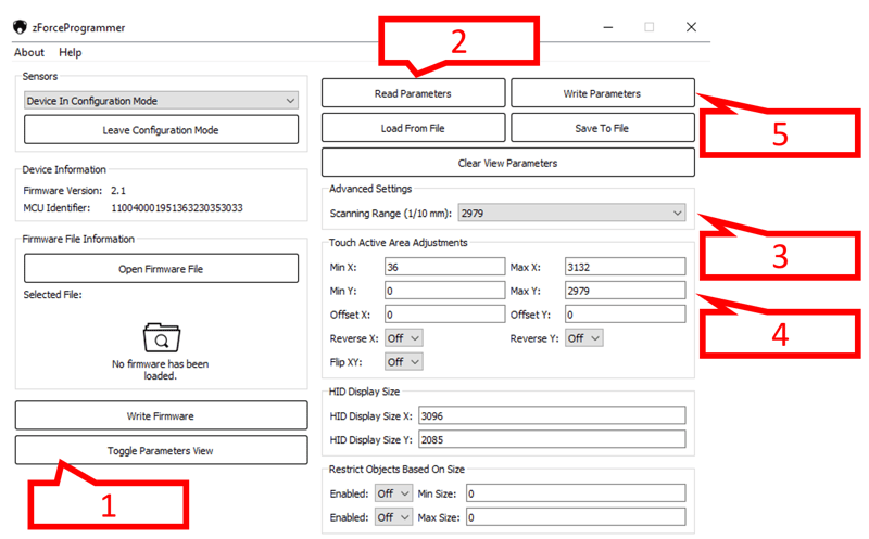 How to load “Touch Sensor Module Firmware 1.55 - ER” by using zForceProgrammer: