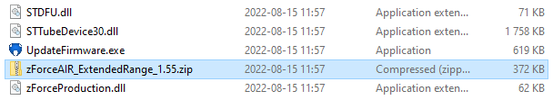 - Extract the downloaded folder called “zForceAIR_ExtendedRange_1.55.zip”