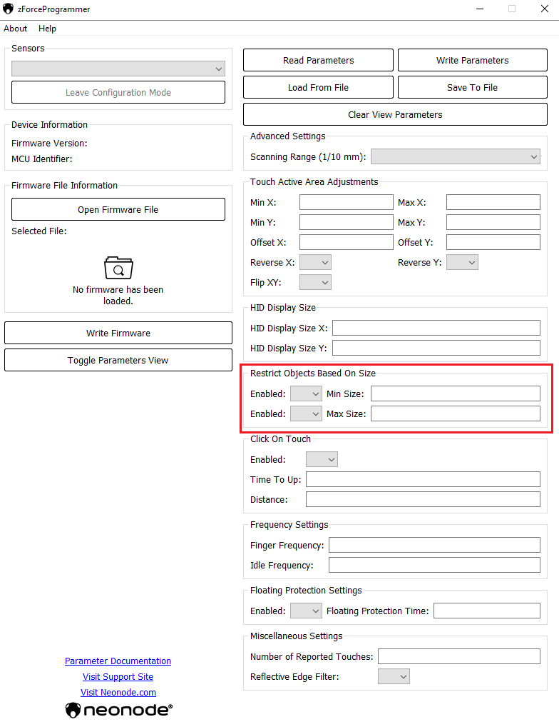 Yes, we have included this feature in our firmware and the dimensions of the objects can be specified using zForceProgrammer tool (see below).