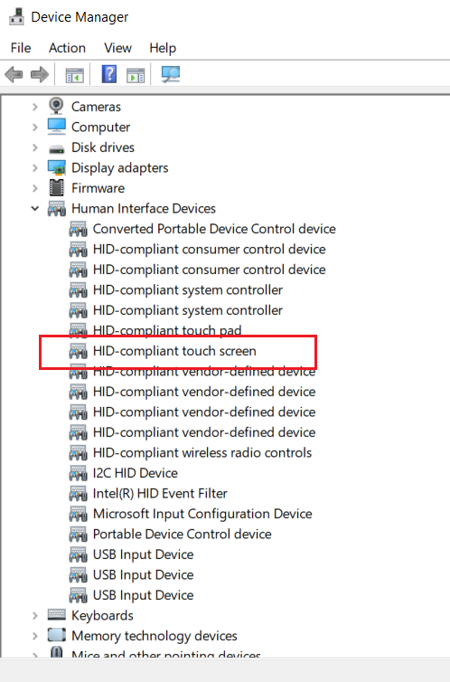 Step 6. Open the Device Driver and localize "HID-compliant touch screen device":