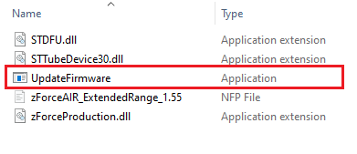 There is no need to use the UpdateFirmware tool to flash any FW on the sensor any more. All the FW releases, custom or general, can be flashed using the zForceProgrammer.
