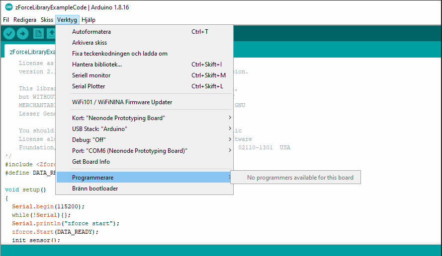 - Make sure that no other program like zForceProgrammer, Workbench, Raspberry Pi or Arduino are up and running. Neither should any other program or application that may try to connect to the NPB over serial connection be running as this can prevent Ide from uploading to the NPB.