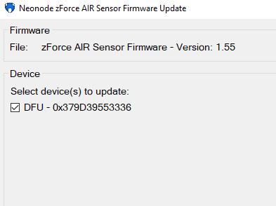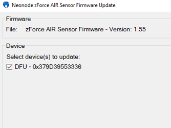 - Set the sensor into the DFU mode by holding down the black button on the interface board while connecting to the computer and release once connected: