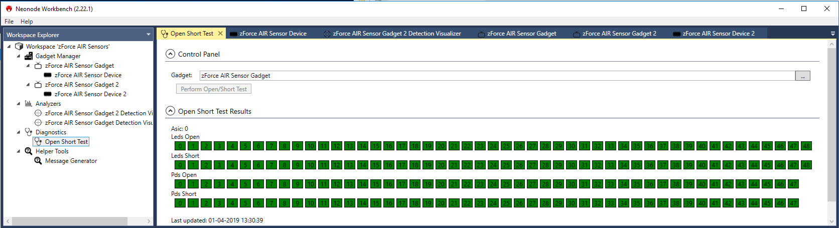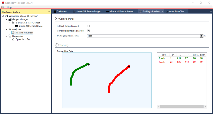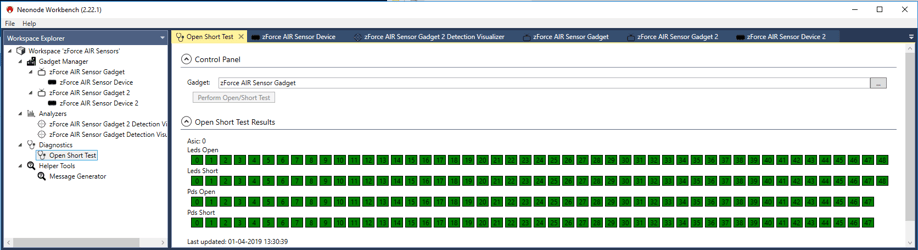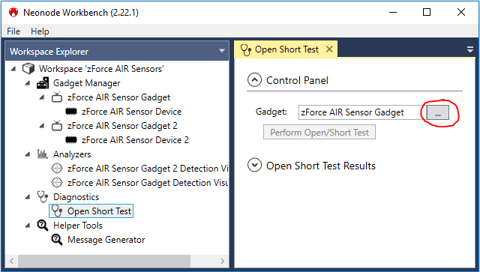 - In the right panel, select the zForce AIR Sensor Gadget to test: