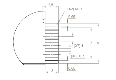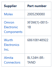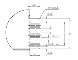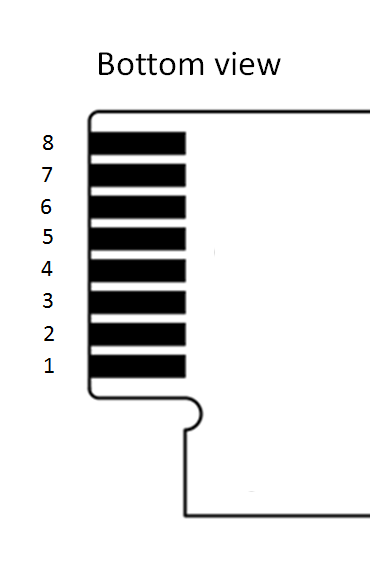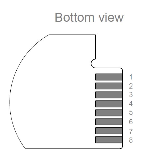 The Touch Sensor Module has 8 contact pads and a PCB outline that matches that of a standard 0.3-0.33 mm thick FFC/FPC with 1 mm pitch and top mounted connectors: