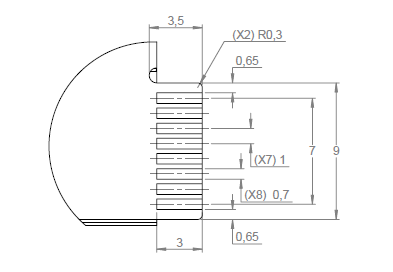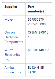 The Touch Sensor Module has 8 contact pads and a PCB outline that matches that of a standard 0.3-0.33 mm thick FFC/FPC with 1 mm pitch and top mounted connectors: