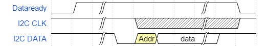 PIN 3 can be used as an interrupt input or it can be read repeatedly by the host. When the pin is set to high, the FW will wait for the host to read data from the I2C bus. When the read transaction is finished, this Data Ready signal will be reset automatically by the sensor module. The following figure shows the timing behavior of a typical I2C transaction: