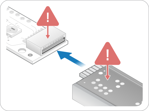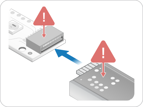 - Make sure the direction of the pads is straight into the connector, and the pads have reached the end of the connector.