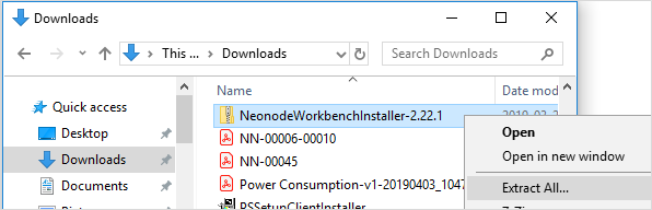 - Download the latest release of the Workbench installation package from https://support.neonode.com/docs/pages/viewpage.action?pageId=2490816.