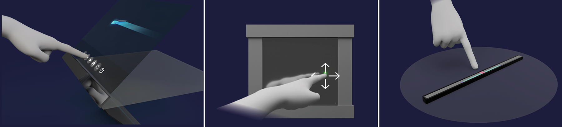 Achieve contactless touch integration with a holographic display. The hologram is created from a projected image of a display, which gives the illusion of having the display’s image floating in the air. By having an application showing on the display, the user could control its interface with the use of our zForce AIR Touch Sensor. The sensor is positioned in the same direction as the projected image, which means that the user can interact with the hologram by touching it. This interaction is done through hand gestures without having to make contact to any surface.