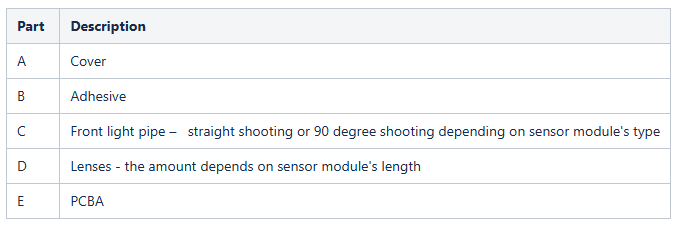 The image below shows the sensor module (0° type) in an exploded view.