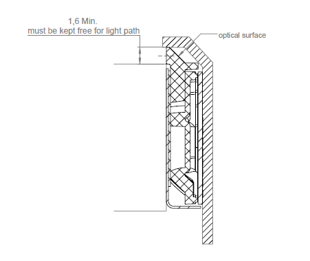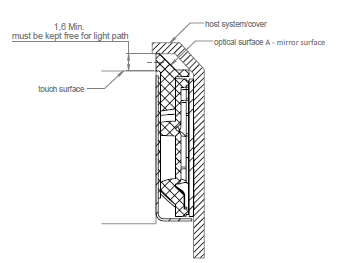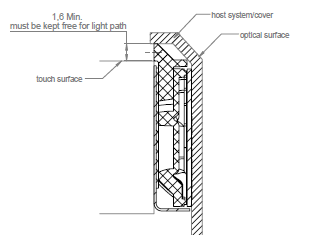 When integrating the Touch Sensor Module into a host system make sure not to interfere with the light path. For horizontal integration, the opening for the sensor modules light path must be minimum 1.4 mm.