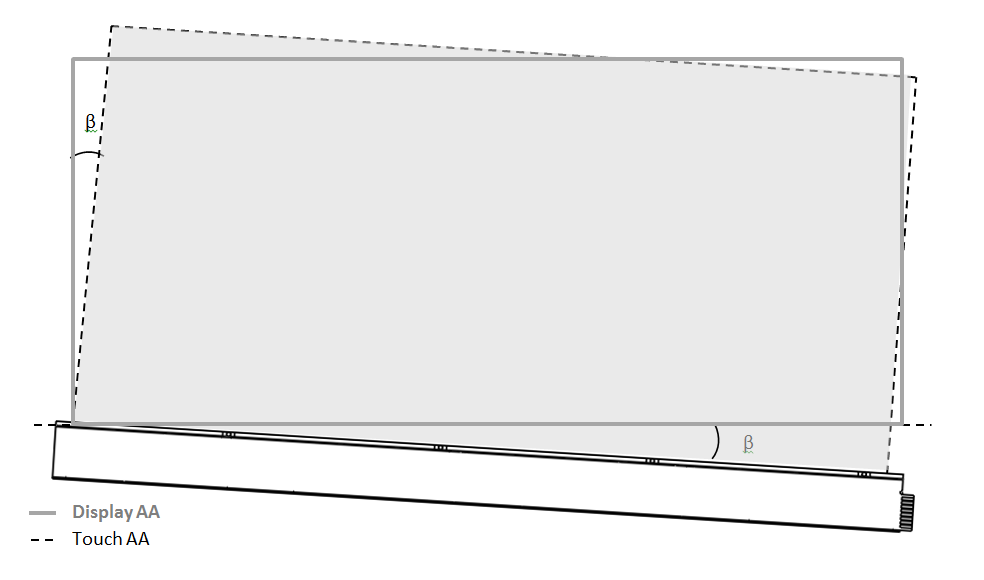 The angle "b" is defined as shown in the image below. How sensitive the Touch Sensor Module is for assembly rotations is directly linked to the size. At any given angle b, the Touch Active Area will be tilted twice as much at 200 mm compared to at 100 mm.