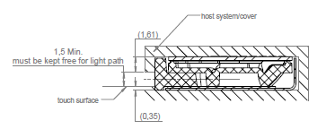 When integrating the Touch Sensor Module into a host system make sure not to interfere with the light path. For horizontal integration, the opening for the sensor modules light path must be minimum 1.4 mm.