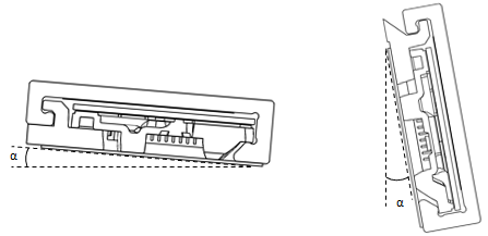 Hovering touches is also direct linked to how the sensor module is integrated in the host system. It’s important that the mounting surface has the correct angle compared to the intended touch surface. Twisting and tilting of the Touch Sensor Module should always be avoided. Relaxed tolerances can lead to missed touches and increased hovering. See Translational Tolerances (z direction) and Rotational Tolerances (angle "a").