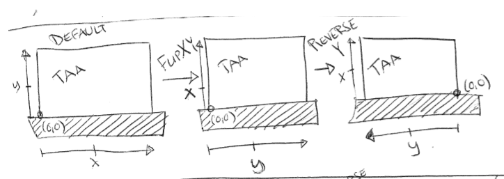 This means that if a sensor module is positioned above a display, with the black side facing outwards, and its TAA covering the screen - Both coordinates systems would be co-aligned and a reported touch would project on the display seamlessly. But if we were to flip the sensor module to cover the screen from underneath the display, a reported touch would appear to be reversed in y-direction since their coordinate systems would no longer be co-aligned, as the illustration show below.