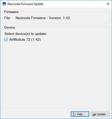 The connected sensor's current firmware version is displayed, under Device. - Make sure the checkbox for the sensor is checked and click Update.