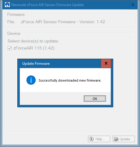 When the firmware update is completed, a pop up message is displayed. The sensor can be used right away after the update is finished.