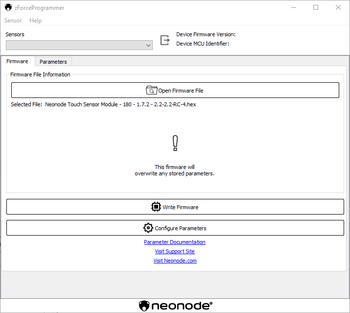 - Click Write Firmware and wait for the process to complete. During this stage, do NOT disconnect the sensor.